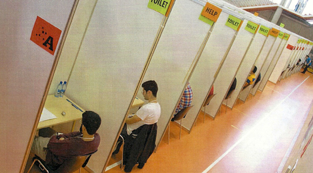 Dann fanden die so genannten „moderations“ statt. Das heißt, dass sich die Leader mit jenen Korrektor-Teams trafen, die die Arbeiten ihrer Schüler korrigiert hatten, um sich auf eine für alle faire Punkteanzahl zu einigen. Da im Vorfeld die gegenseitigen Punkteeinschätzungen per Computer übermittelt wurden, waren diese Punkteverhandlungen im Allgemeinen in geraffter Zeit möglich.