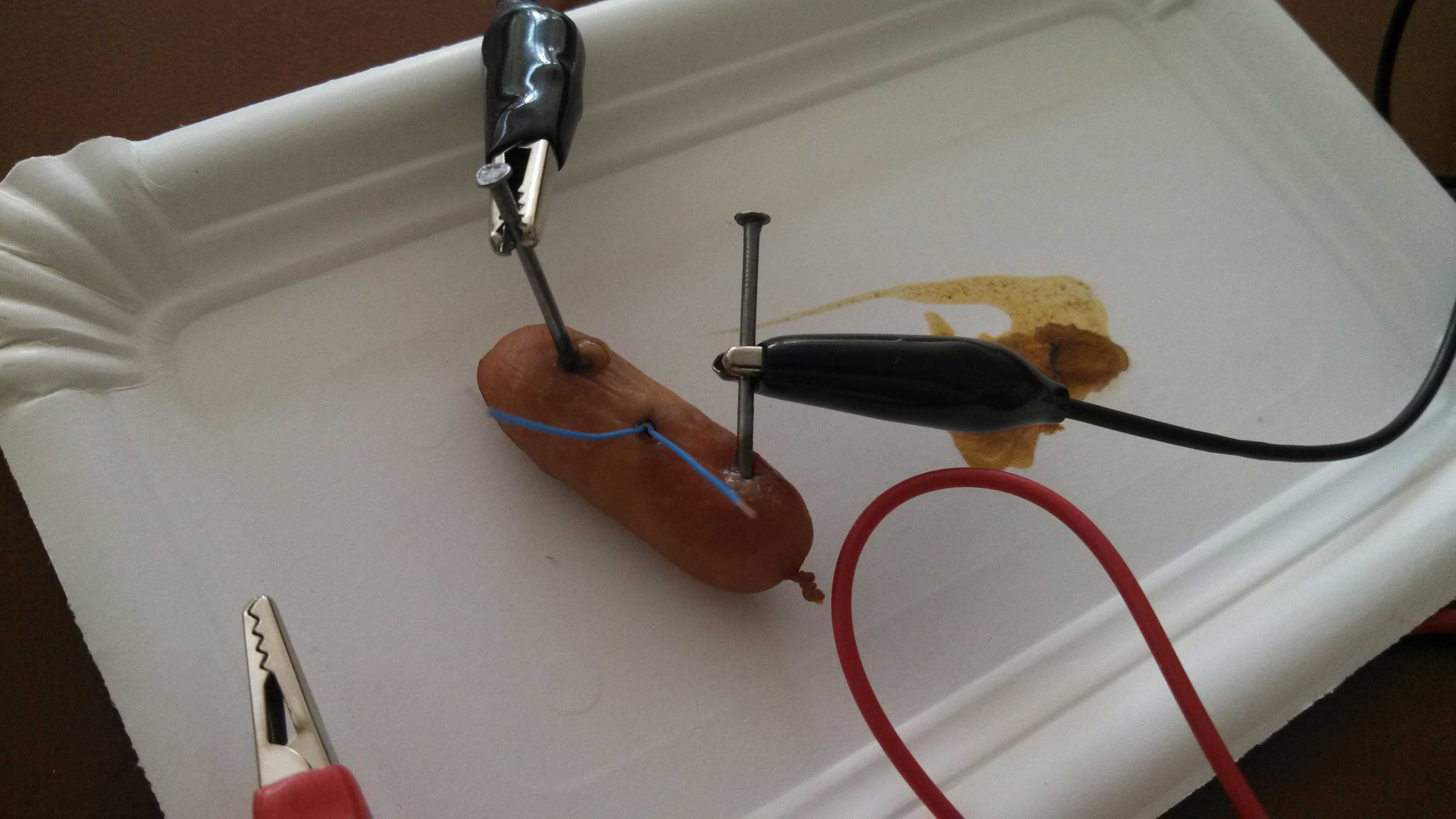 Im Experiment wurde ein kleines Snackwürstchen auf seine elektrischen Eigenschaften hin untersucht. Auf Widerstand, aufgenommene Leistung und die damit erzielt Erwärmung des Würstchens war der Augenmerk zu richten.