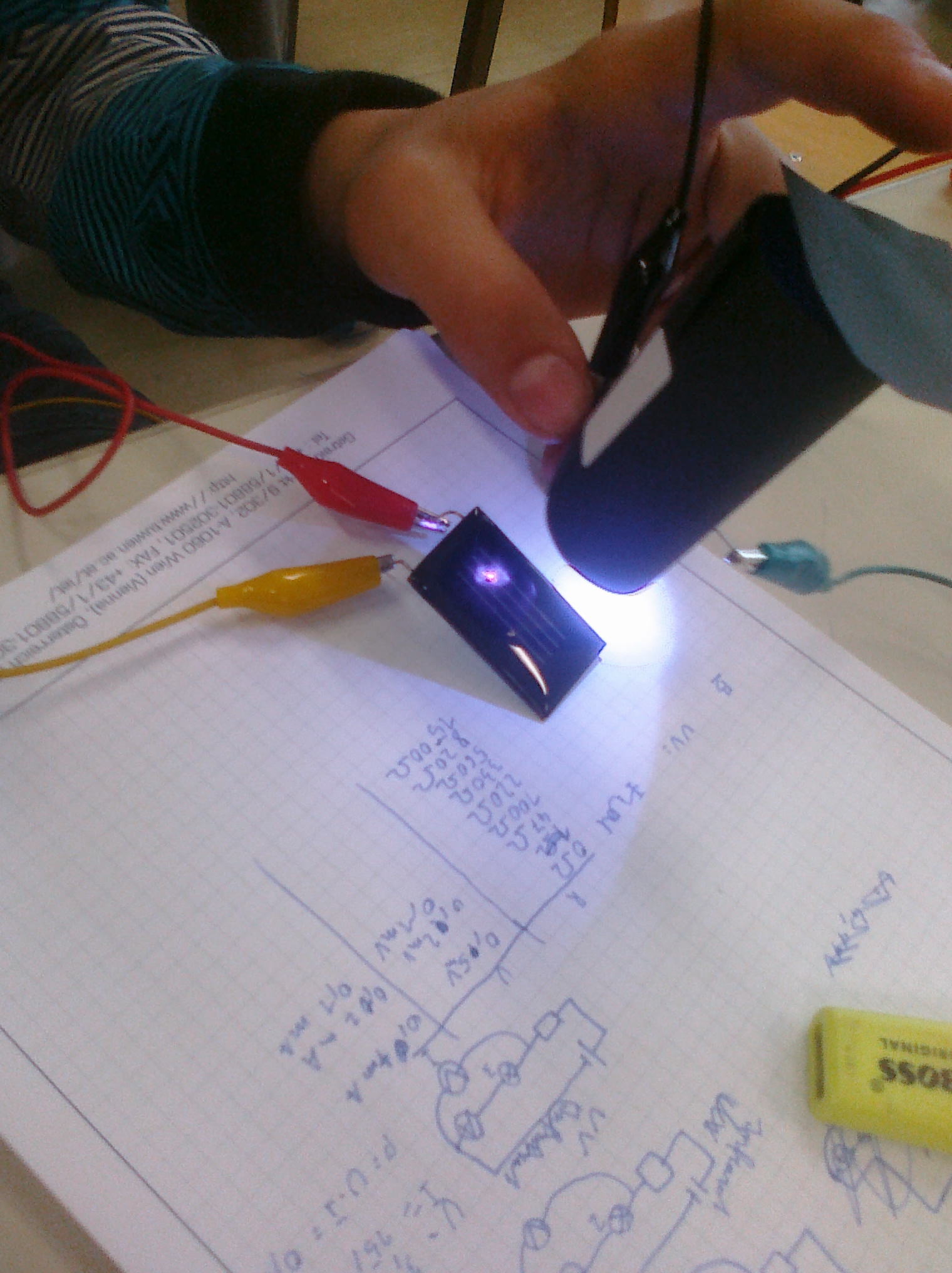 Im Experiment mussten die Olympioniken die Eigenschaften einer Solarzelle bei der Bestrahlung mit drei verschiedenen Lichtquellen (sichtbares Licht, IR und UV) austesten.